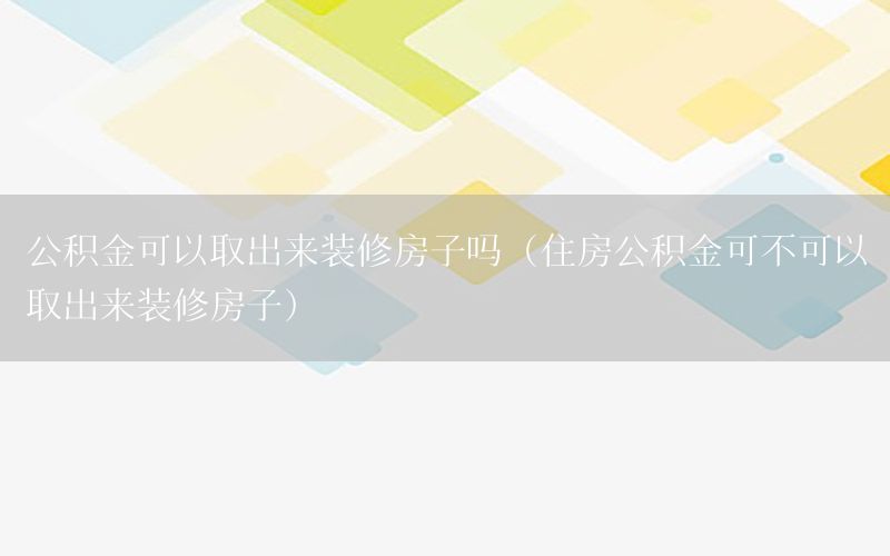 大家好,今天小編關(guān)注到一個(gè)比較有意思的話題,就是關(guān)于公積金可以取出來(lái)裝修房子嗎的問(wèn)題,于是小編就整理了5個(gè)相關(guān)介紹公積金可以取出來(lái)裝修房子嗎的解答,讓我們一起看看吧。