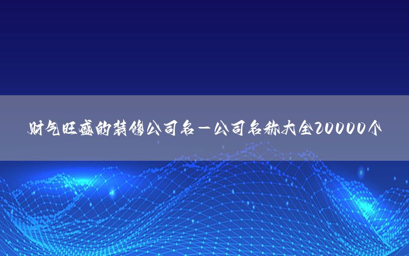 關(guān)于財(cái)氣旺盛的裝修公司名和公司名稱大全20000個(gè)的介紹到此就結(jié)束了,不知******從中找到***需要的信息了嗎 ?如果***還想了解更多這方面的信息,記得收***關(guān)注本站。 財(cái)氣旺盛的裝修公司名的介紹就聊到這里吧,感謝***花時(shí)間閱讀本站內(nèi)容,更多關(guān)于公司名稱大全20000個(gè)、財(cái)氣旺盛的裝修公司名的信息別忘了在本站進(jìn)行查找喔。
