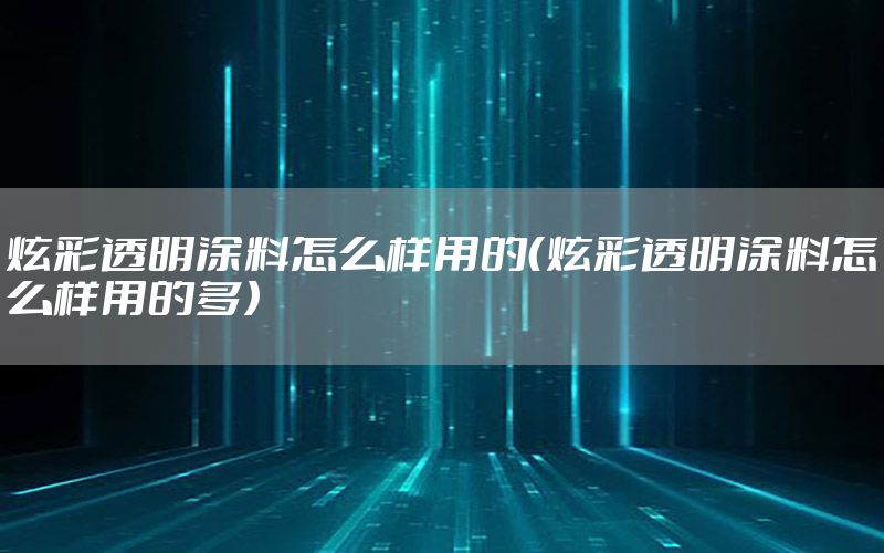 本篇文章給大家談?wù)勳挪释该魍苛显趺礃佑玫?,以及炫彩透明涂料怎么樣用的多?duì)應(yīng)的知識(shí)點(diǎn),希望對(duì)各位有所幫助,不要忘了收***本站喔。 今天給各位分享炫彩透明涂料怎么樣用的的知識(shí),其中也會(huì)對(duì)炫彩透明涂料怎么樣用的多進(jìn)行解釋,如果能碰巧解決***現(xiàn)在面臨的問(wèn)題,別忘了關(guān)注本站,現(xiàn)在開(kāi)始吧!