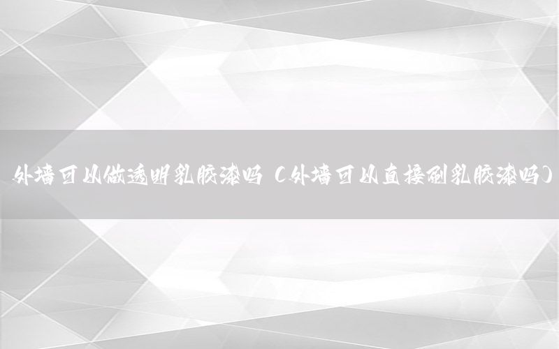 大家好,今天小編關(guān)注到一個(gè)比較有意思的話題,就是關(guān)于外墻可以做透明乳膠漆嗎的問題,于是小編就整理了5個(gè)相關(guān)介紹外墻可以做透明乳膠漆嗎的解答,讓我們一起看看吧。