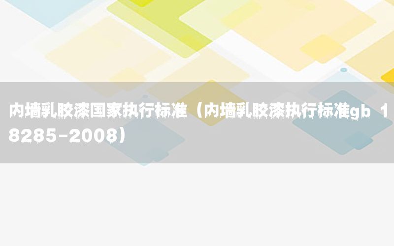 本篇文章給大家談?wù)剝?nèi)墻乳膠漆國家執(zhí)行標(biāo)準(zhǔn),以及內(nèi)墻乳膠漆執(zhí)行標(biāo)準(zhǔn)gb 18285-2008對應(yīng)的知識(shí)點(diǎn),希望對各位有所幫助,不要忘了收***本站喔。 今天給各位分享內(nèi)墻乳膠漆國家執(zhí)行標(biāo)準(zhǔn)的知識(shí),其中也會(huì)對內(nèi)墻乳膠漆執(zhí)行標(biāo)準(zhǔn)gb 18285-2008進(jìn)行解釋,如果能碰巧解決***現(xiàn)在面臨的問題,別忘了關(guān)注本站,現(xiàn)在開始吧!