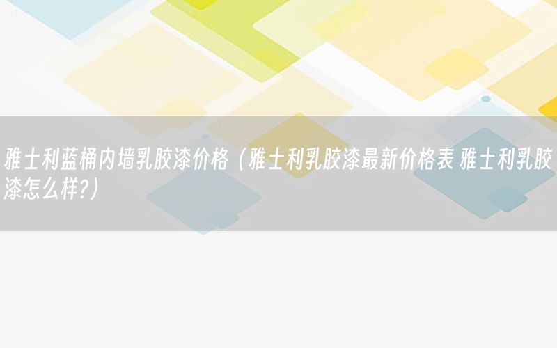 本篇文章給大家談?wù)勓攀坷{(lán)桶內(nèi)墻乳膠漆價(jià)格,以及雅士利乳膠漆最新價(jià)格表 雅士利乳膠漆怎么樣?對(duì)應(yīng)的知識(shí)點(diǎn),希望對(duì)各位有所幫助,不要忘了收***本站喔。 今天給各位分享雅士利藍(lán)桶內(nèi)墻乳膠漆價(jià)格的知識(shí),其中也會(huì)對(duì)雅士利乳膠漆最新價(jià)格表 雅士利乳膠漆怎么樣?進(jìn)行解釋,如果能碰巧解決***現(xiàn)在面臨的問(wèn)題,別忘了關(guān)注本站,現(xiàn)在開(kāi)始吧!