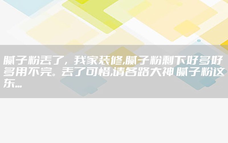 本篇文章給大家談談膩子粉丟了,以及我家裝修,膩子粉剩下好多好多用不完。丟了可惜,請各路大神 膩子粉這東...對應的知識點,希望對各位有所幫助,不要忘了收***本站喔。 今天給各位分享膩子粉丟了的知識,其中也會對我家裝修,膩子粉剩下好多好多用不完。丟了可惜,請各路大神 膩子粉這東...進行解釋,如果能碰巧解決***現(xiàn)在面臨的問題,別忘了關注本站,現(xiàn)在開始吧!