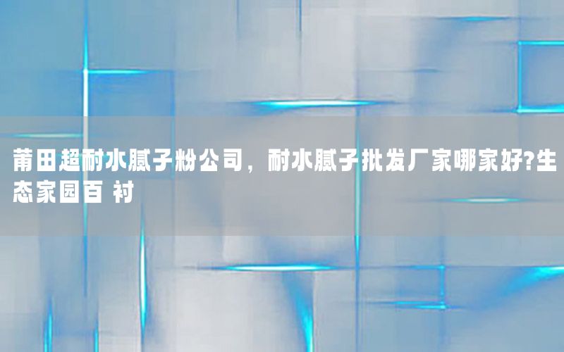 本篇文章給大家談談莆田超耐水膩子粉公司,以及耐水膩子批發(fā)廠家哪家好?生態(tài)家園百囍襯對應的知識點,希望對各位有所幫助,不要忘了收***本站喔。 今天給各位分享莆田超耐水膩子粉公司的知識,其中也會對耐水膩子批發(fā)廠家哪家好?生態(tài)家園百囍襯進行解釋,如果能碰巧解決***現(xiàn)在面臨的問題,別忘了關(guān)注本站,現(xiàn)在開始吧!